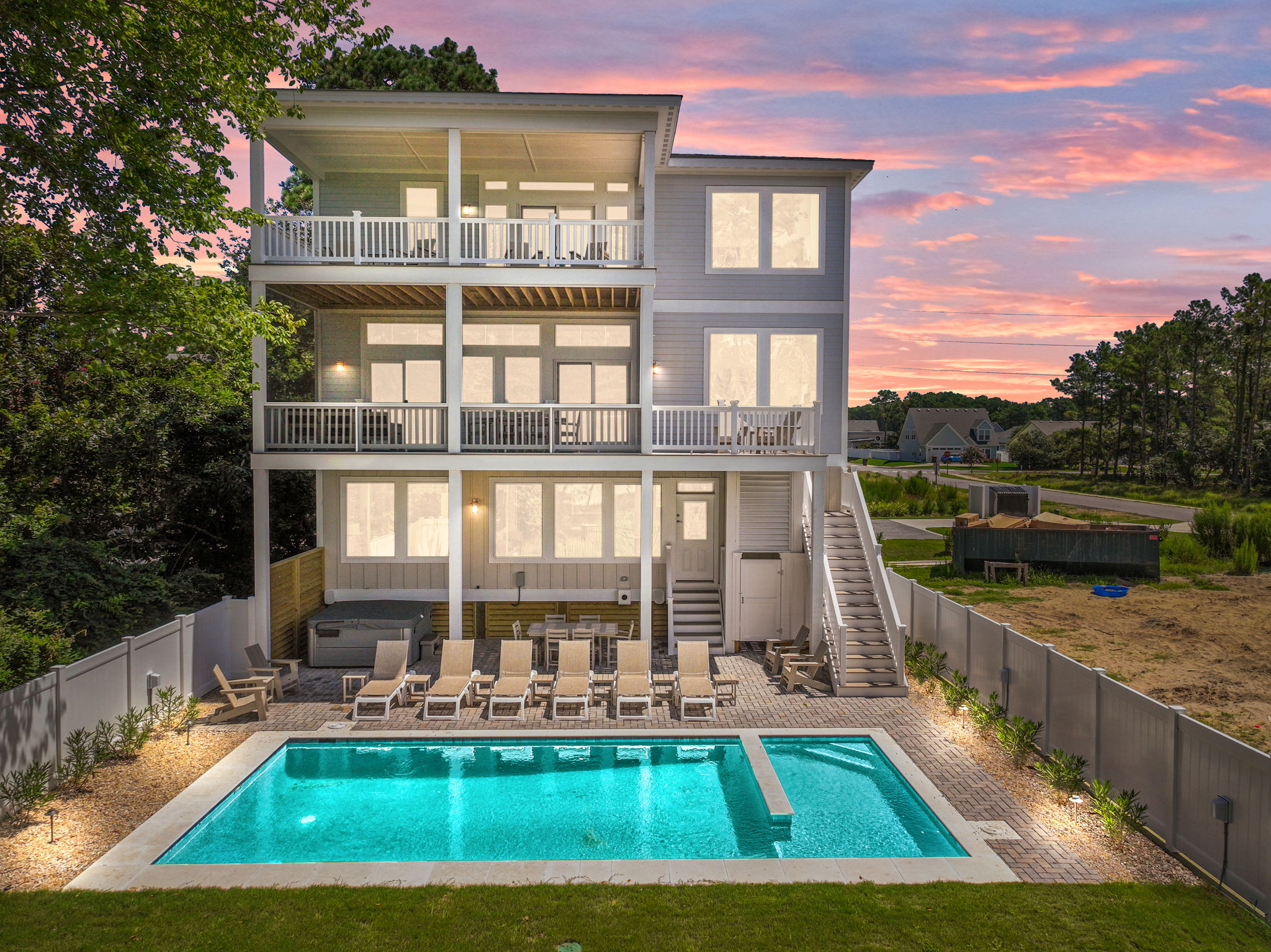 Fulfill your coastal property dreams here in this 6-bed, 6-and-a-half-bath beach home. This FUN Ocean Sands property boasts soaring ceilings, thoughtfully designed features, and ample entertaining spaces. The reverse floor plan hosts tons of natural light, a well-equipped kitchen, a spacious living area with fireplace, and access to sun decks overlooking the private pool.